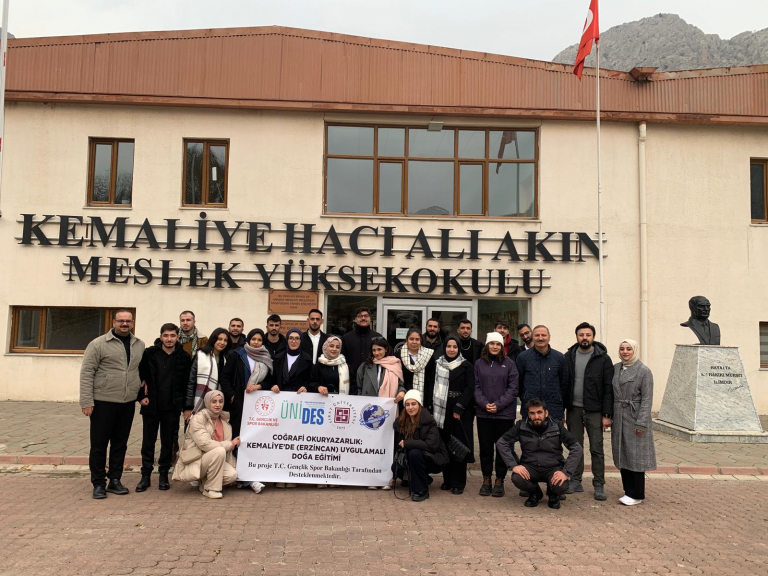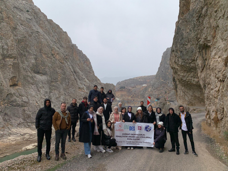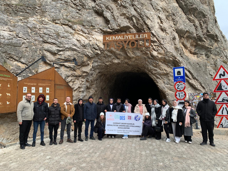 Bölümümüz Coğrafya Öğrenci Topluluğu koordinatörlüğünde hazırlanan Türkiye Cumhuriyeti Gençlik ve Spor Bakanlığı Ünides programı tarafından desteklenen “Coğrafi Okuryazarlık: Kemaliye (Erzincan)’de Uygulamalı Doğa Eğitimi” adlı proje 29-30 Kasım tarihlerinde gerçekleştirildi. Uygulamalı doğa eğitimi; Coğrafya Bölümü Başkanı Prof. Dr. Murat SUNKAR, Coğrafya Bölümü Araştırma Görevlileri Murat AYDIN ve Muhammed KOCAOĞLU’nun rehberliğinde Lisans 3. ve 4.sınıf öğrencilerimizin katılımıyla gerçekleştirildi. Uygulamalı doğa eğitiminde öğrencilerimiz Keban İlçe Merkezi, Keban Barajı, Arapgir İlçe Merkezi, Arapgir Millet Hanı, Arapgir tarihi Mirliva Ahmet Bey Camii, Meydan Köprüsü, Kozluk Çayı, Kayaarası Kanyonu, Kemaliye İlçe Merkezi, Apçaağa Köyü, Ahmet Kutsi Tecer Kültür Müzesi, Apçaağa Kayabaşı Tepesi, Prof. Dr. Ali Demirsoy Doğa Tarihi Müzesi, Karanlık Kanyon ve Karasu Nehri hakkında bilgilendirilip arazide gözlem yapma deneyimi kazandırıldı.